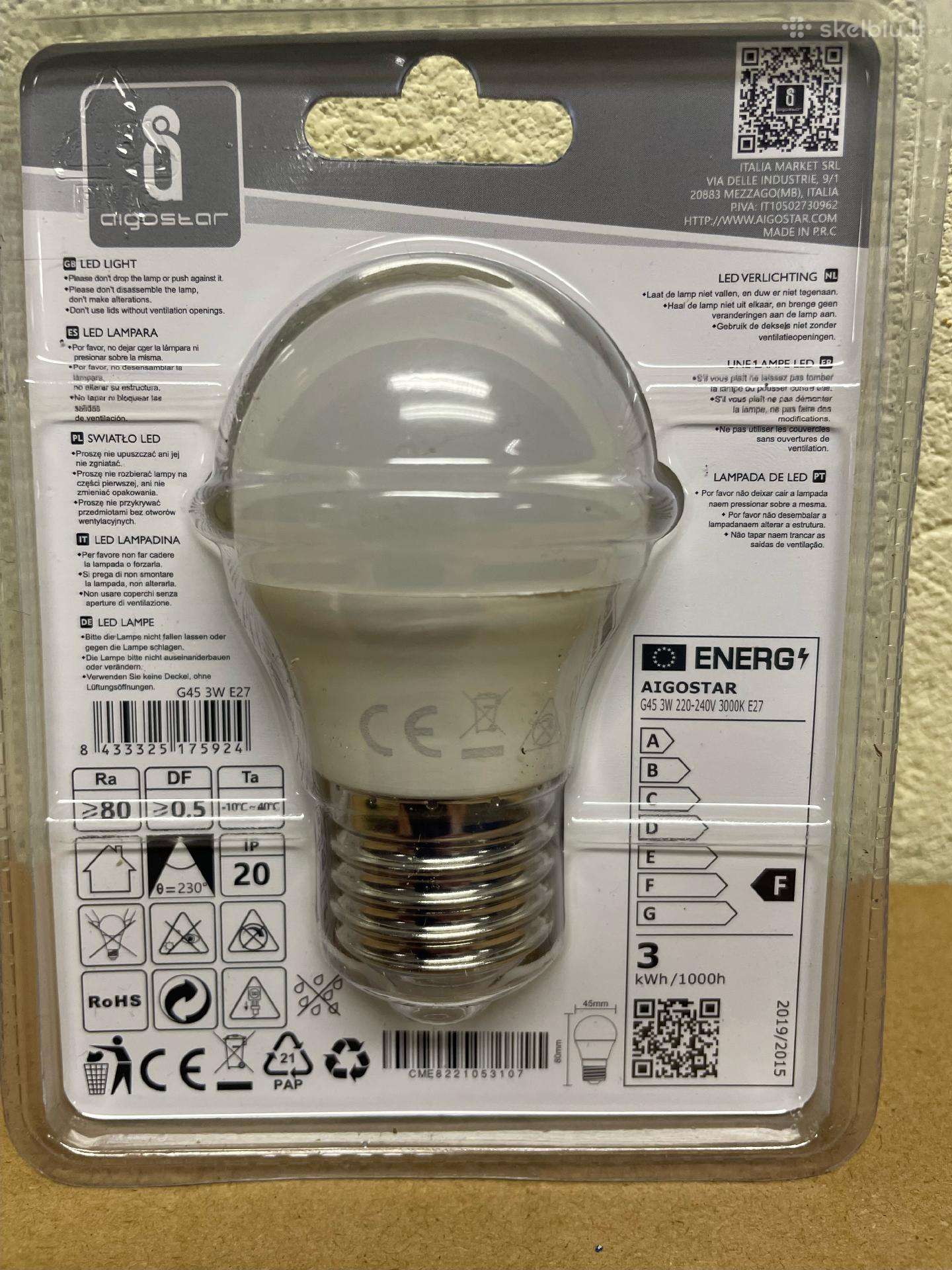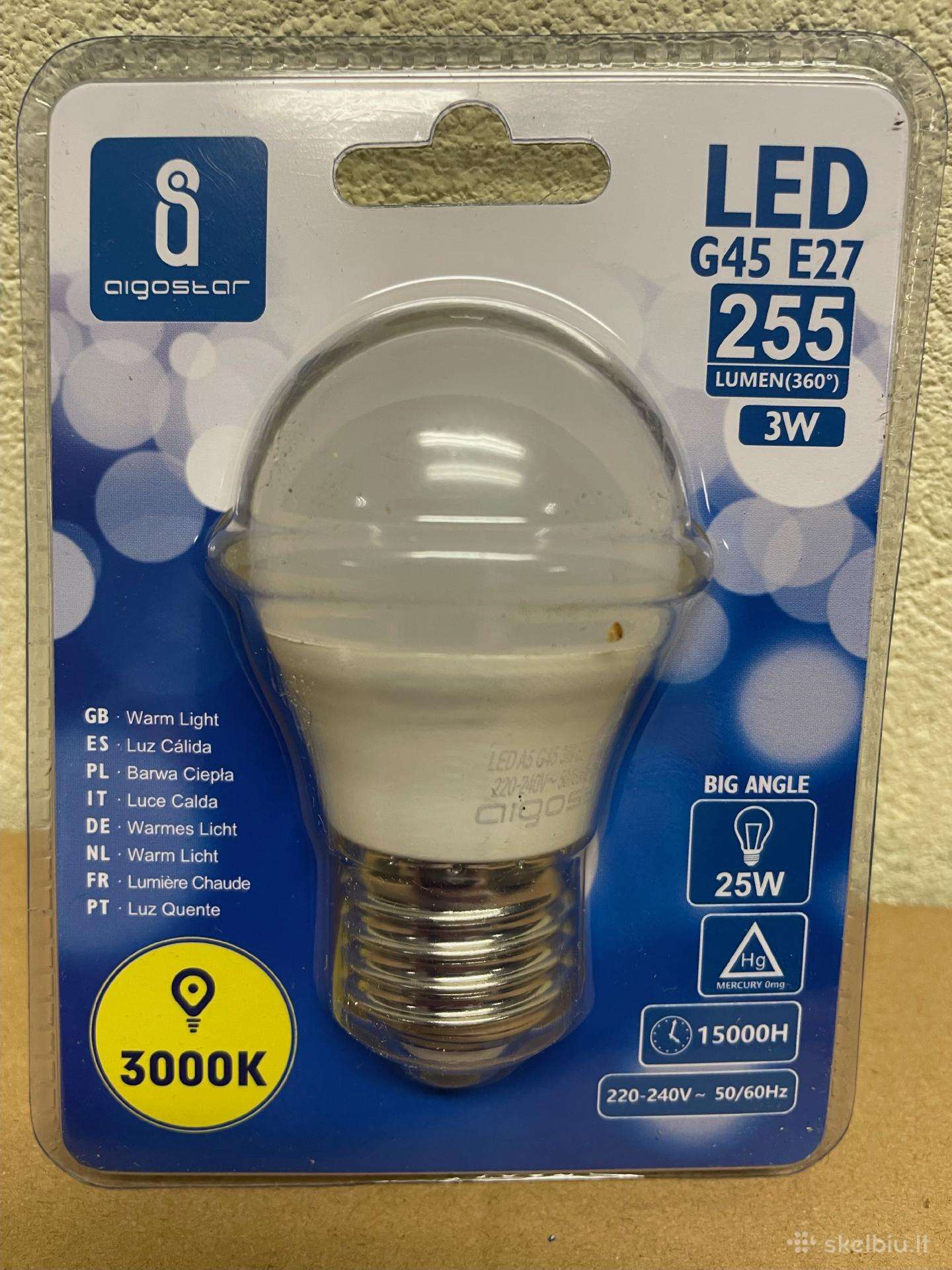 Prekės kodas: led-lempa-3w-e27-g45-230v-3000k-255-lm